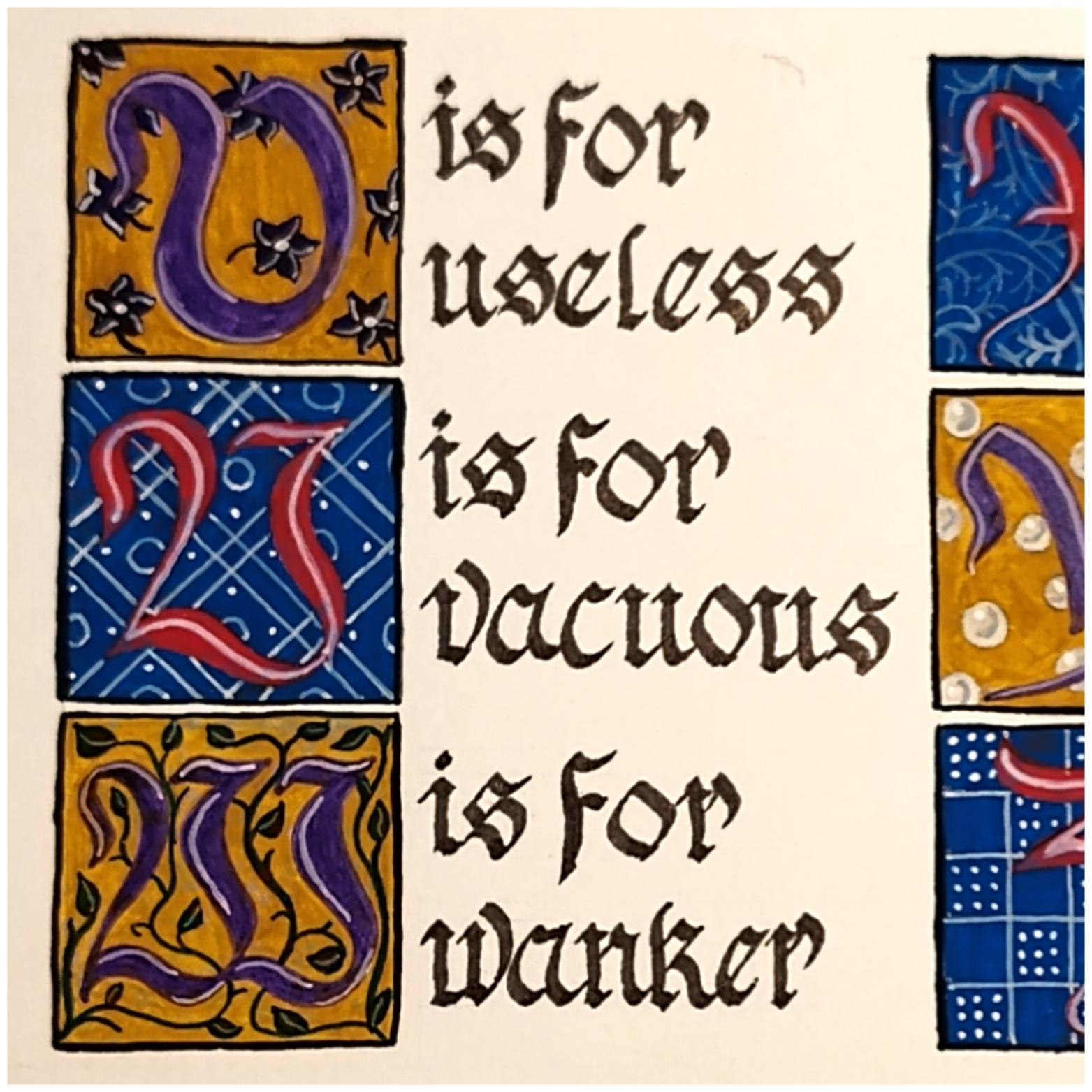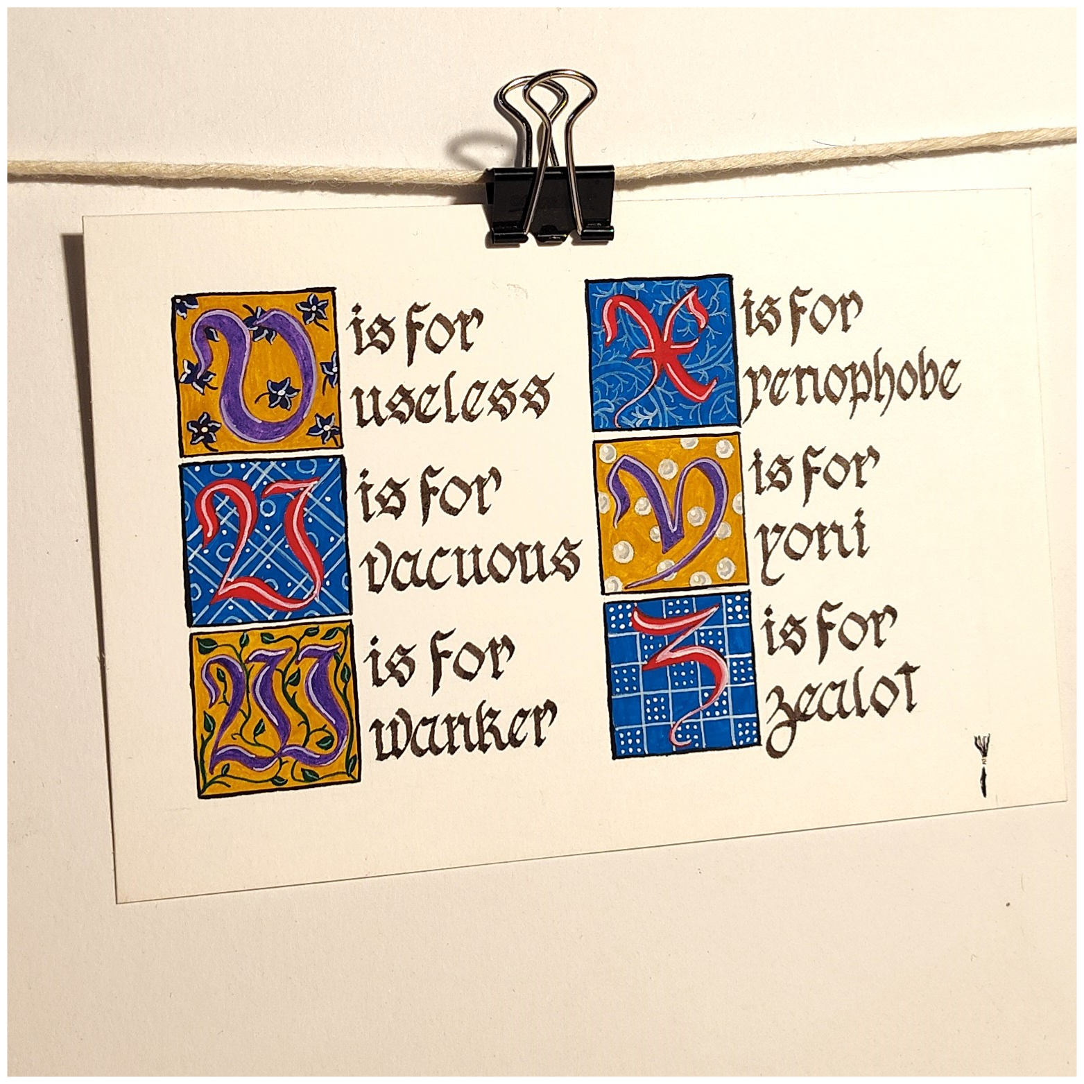 The original hand-painted and inked pieces that were turned into the Caustic Alphabet Print.